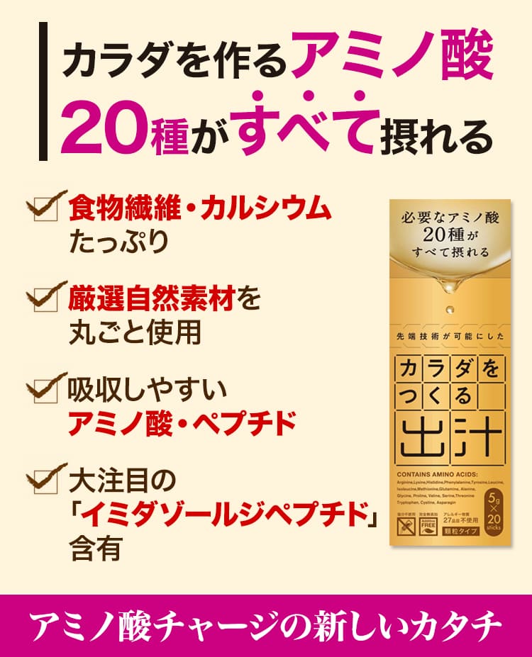 加齢に伴い、イミダゾールジペプチドの体内濃度は減少しますので、カラダをつくる出汁でこまめにチャージしましょう!