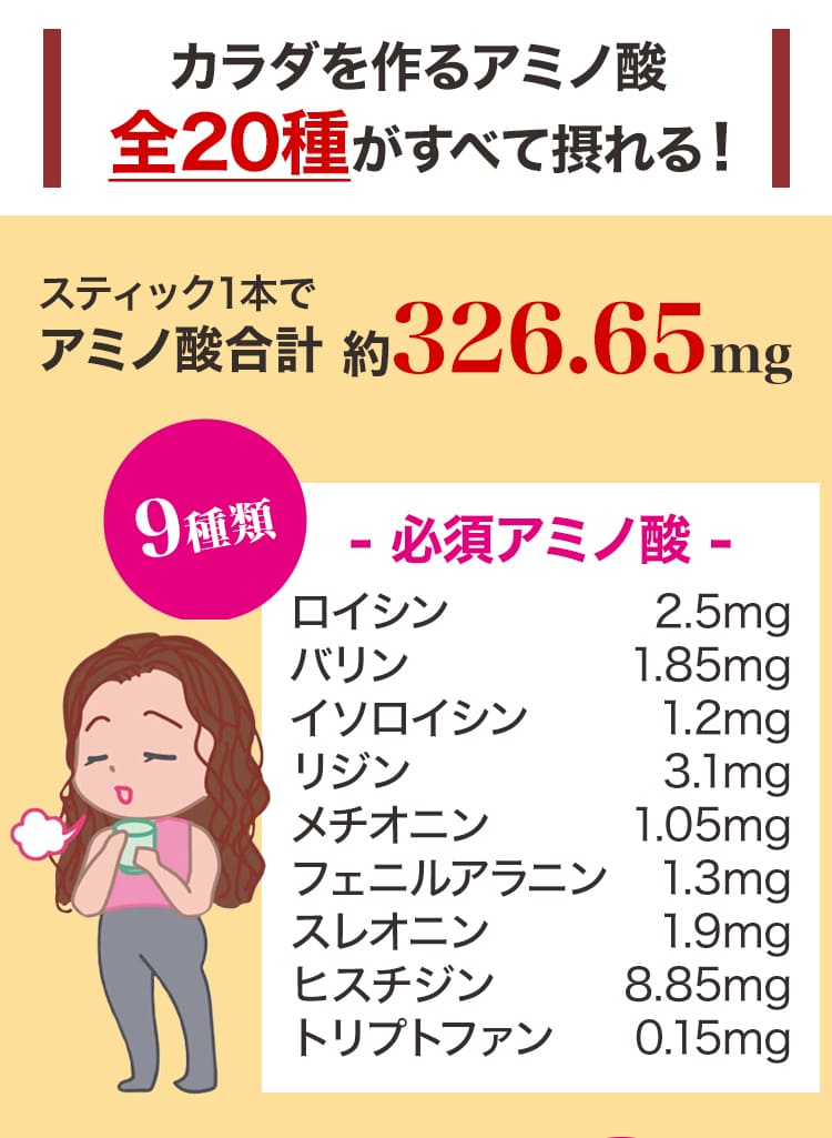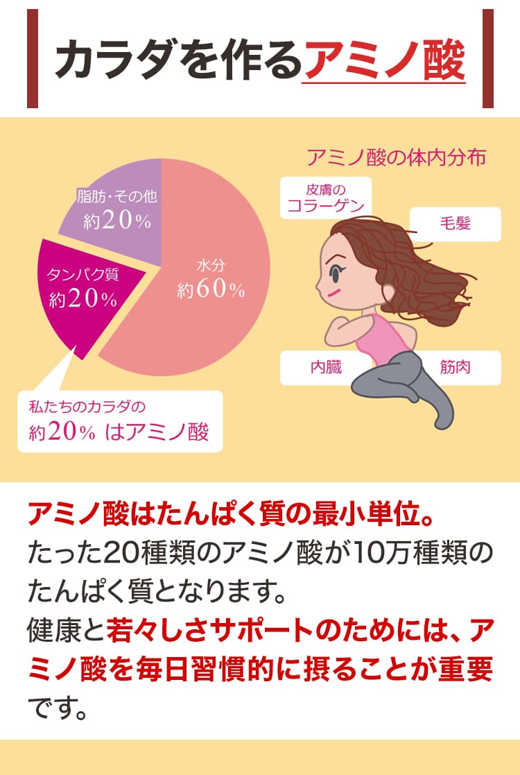 カラダを作るアミノ酸全20種がすべて摂れる!