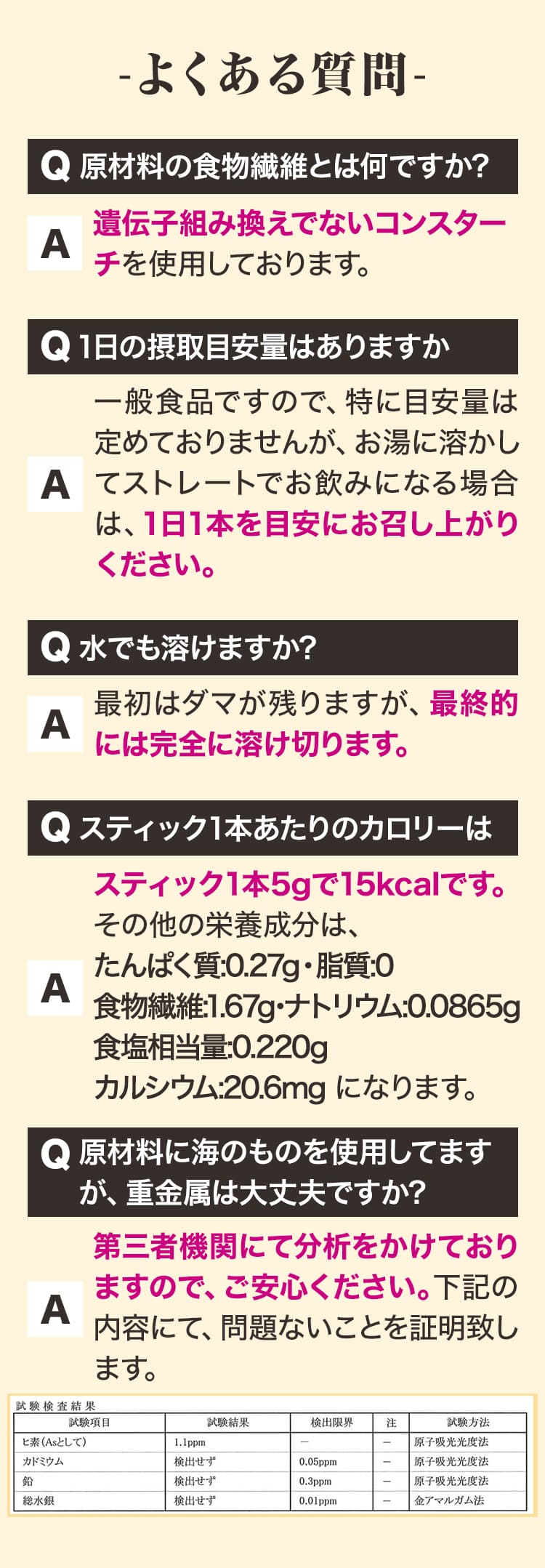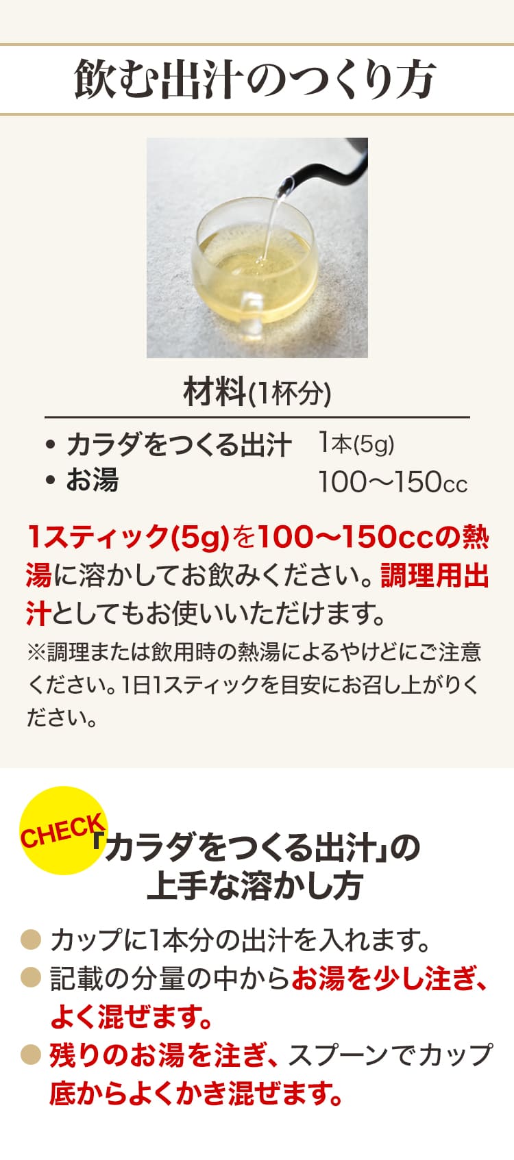 1スティック(5g)を100~150ccの熱湯に溶かしてお飲みください。