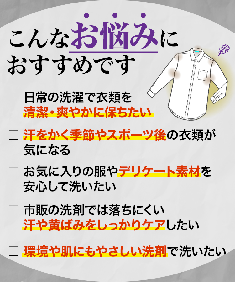 ・市販の洗剤では落ちにくい汗や黄ばみをしっかりケアしたい