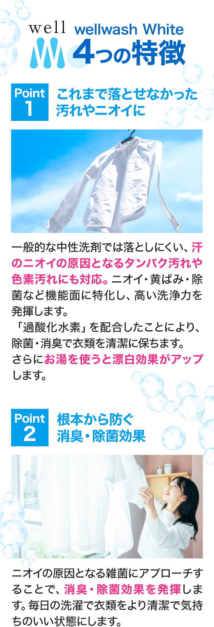 ニオイ・黄ばみ・除菌など機能面に特化し、高い洗浄力を発揮します。