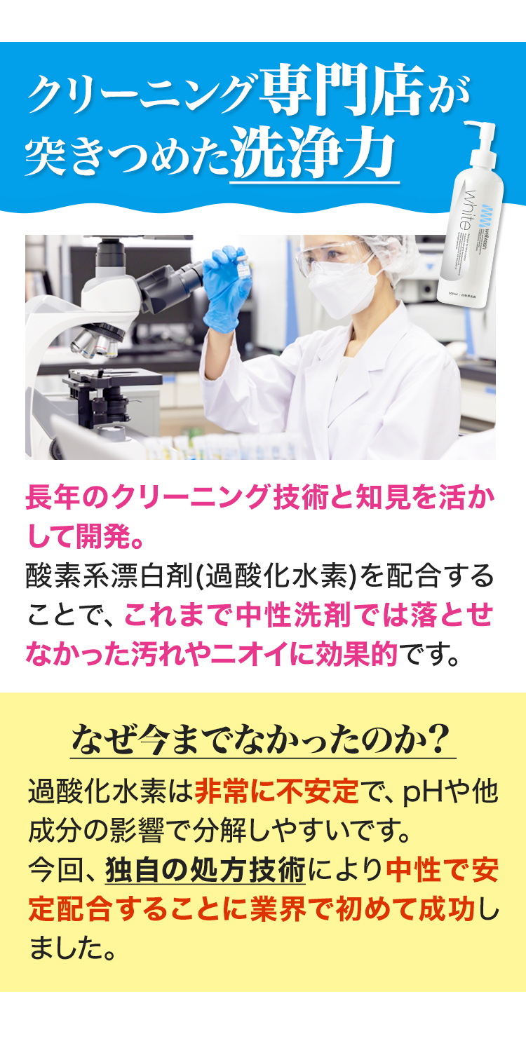クリーニング専門店が開発したプロも使う洗濯洗剤。過酸化水素の力で気持ちいい白に。